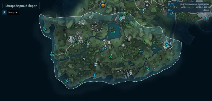 Места расположения коллекционных предметов на карте «Межреберный берег»