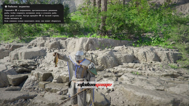 В Crimson Desert рыбу можно ловить двумя способами: рыболовной удочкой или просто руками. Удочка подходит для обычной рыбалки в глубоких водоёмах, а ручной способ удобен там, где до рыбы можно быстро добраться вплавь или вброд.
