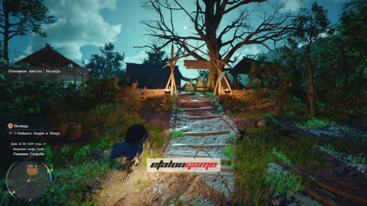 Квест очень короткий и фактически служит мостиком к следующей сцене. Главное — не сворачивать с жёлтого следа и сразу идти к хижине.