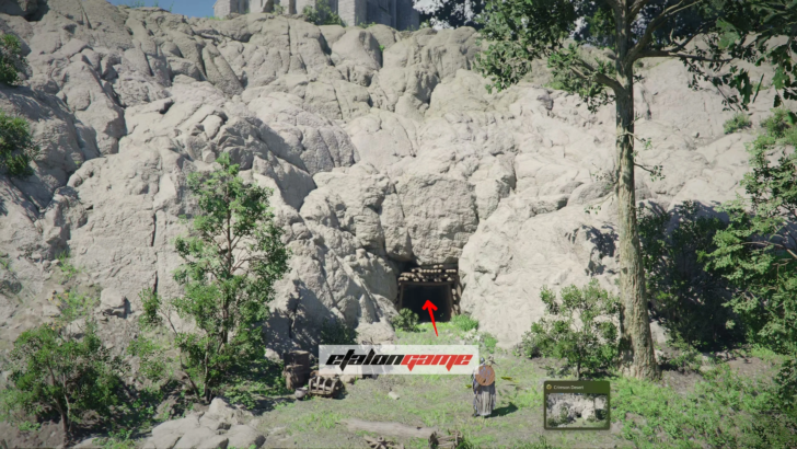 В главный вход идти не нужно. Перед башней спуститесь по скалам справа и найдите пещеру: она ведёт внутрь шпиля, в нижний уровень.