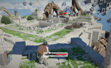 От средней верхней сферы переберитесь на другую сторону через вращающиеся кольца: прыгайте, три раза применяйте «Удар пальмары» в воздухе, а затем раскрывайте планер.