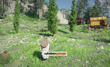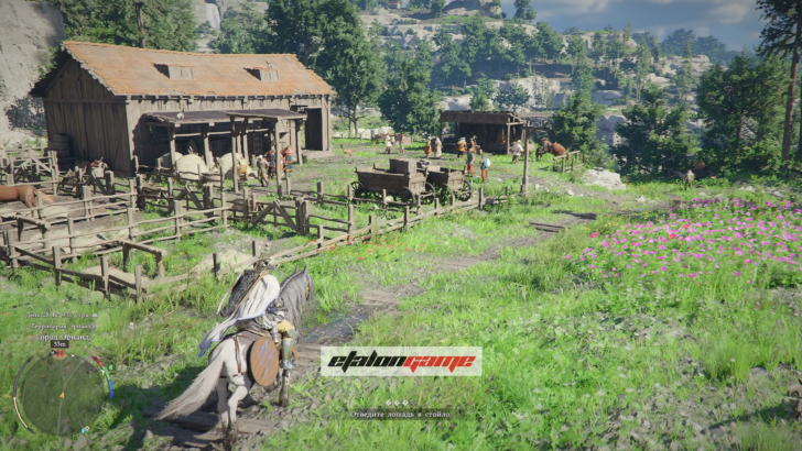 После сцены найдите белую лошадь, которая бегает кругами рядом с солдатами. Это не те лошади, что стоят у повозки. Подойдите к ней и сядьте верхом через действие посадки.