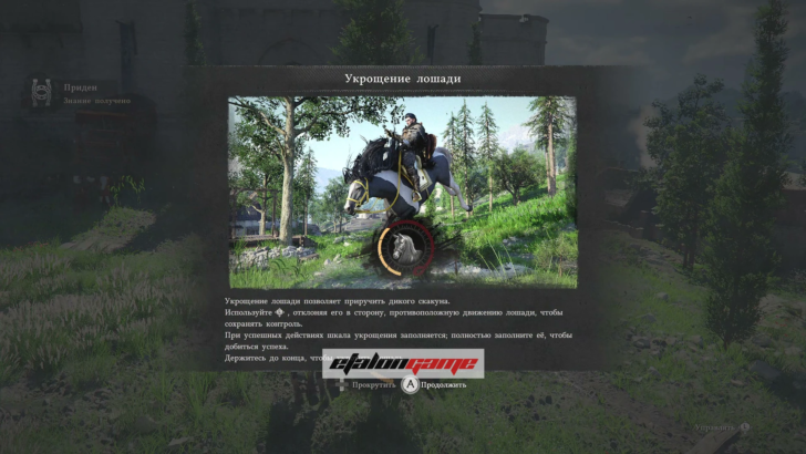 В мини-игре укрощения отклоняйте направление управления в сторону, противоположную взгляду лошади. Если она рвётся вперёд, удерживайте направление назад. Если уходит влево, удерживайте направление вправо.