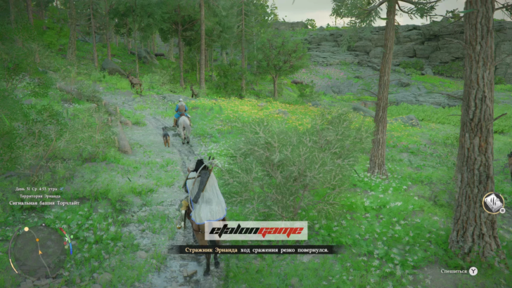 После боя снова следуйте за солдатом верхом. Маршрут приведёт к лагерю у Врат Кальфада, где начнётся следующая кат-сцена.