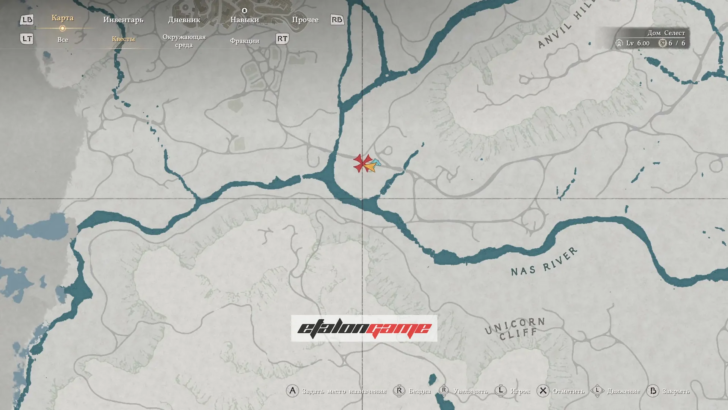 Дом лекаря находится к югу от реки Нас, у Утёса Единорога: