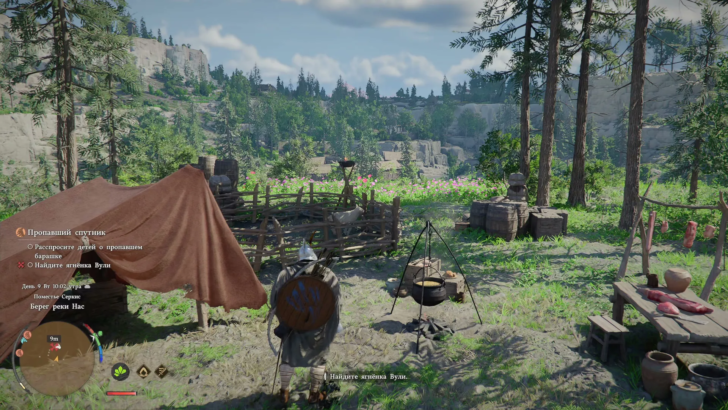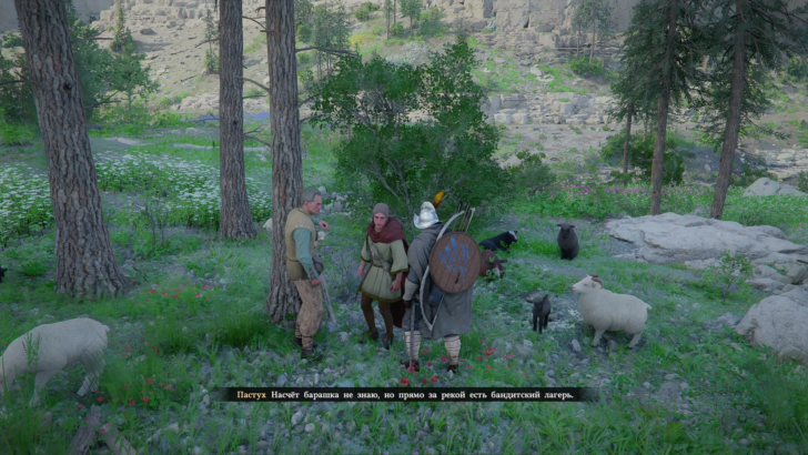 На месте вы обнаружите хорошо охраняемый лагерь бандитов. Убейте всех врагов, чтобы спокойно осмотреть территорию. Затем идите к загону, где стоит одинокий ягнёнок, и поднимите его.