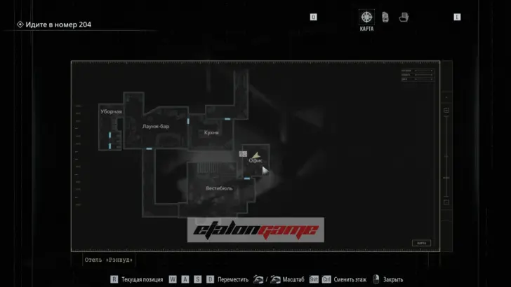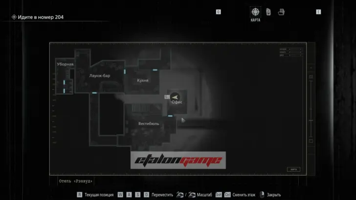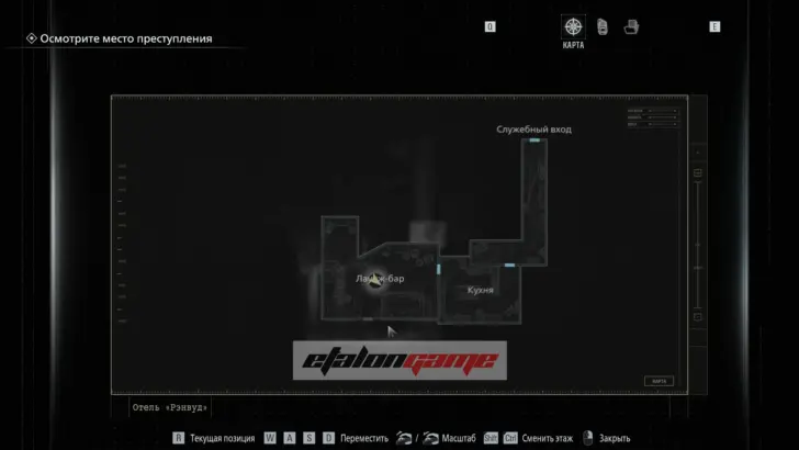 Лаунж-бар: добравшись до тёмной зоны, где нужно включить фонарик, пройдите через кухню. В следующем почти полностью тёмном помещении осмотрите фотографию, приклеенную к барной стойке, и изучите её с обратной стороны. Здесь же впервые становится доступна карта.